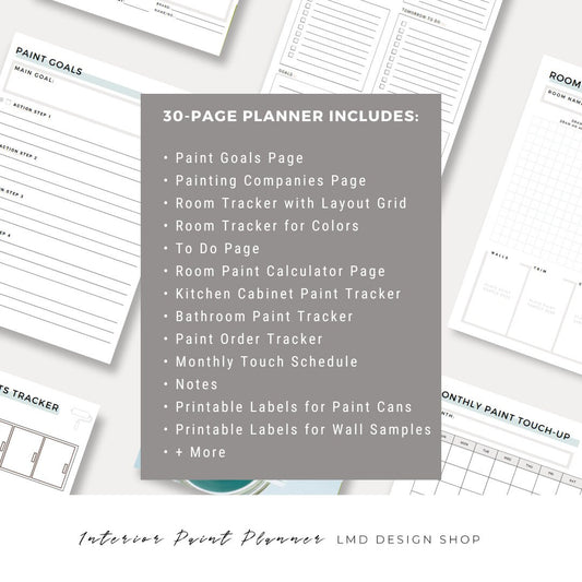 Interior Paint Color Planner | Printable Home Paint Tracker