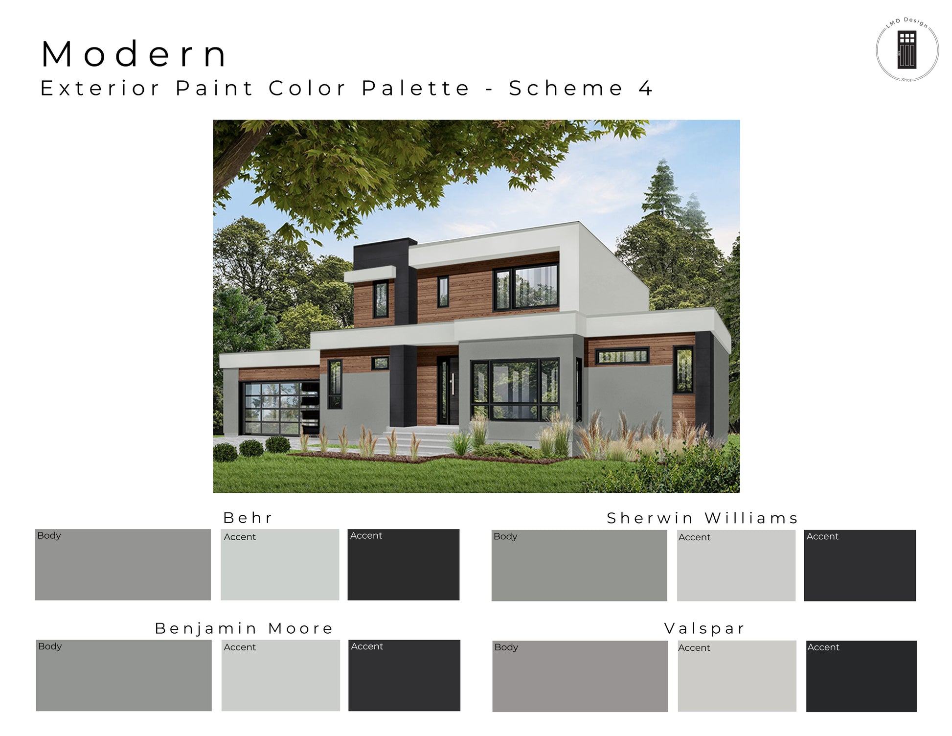 Modern – 6 Pre-Made Exterior Paint Color Schemes